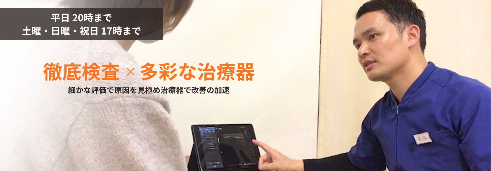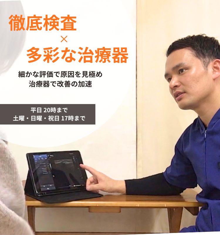 痛めている場所を正確に治療する為に、徒手検査(手で行う検査)やエコー検査を用いて原因を探ります!